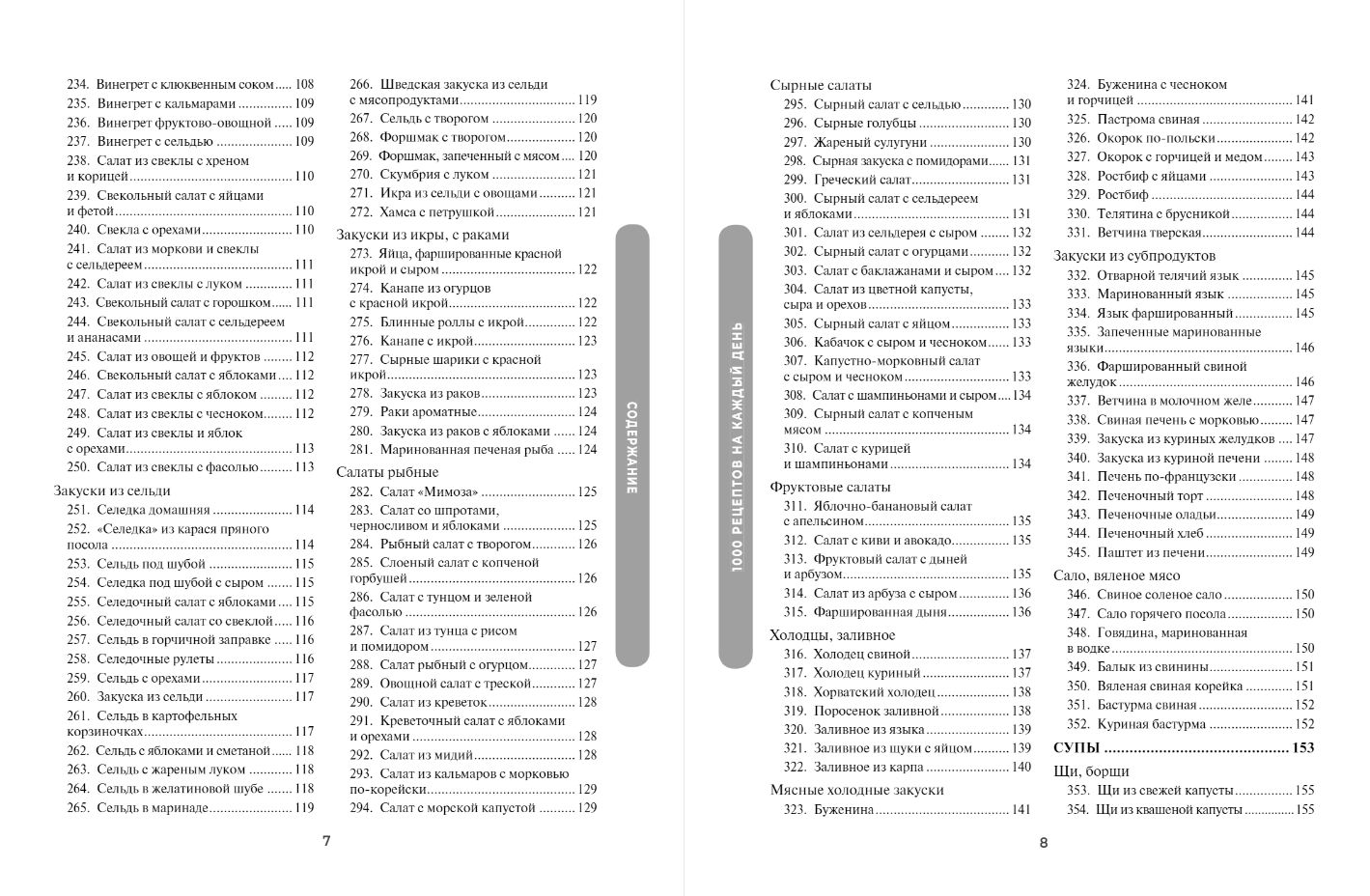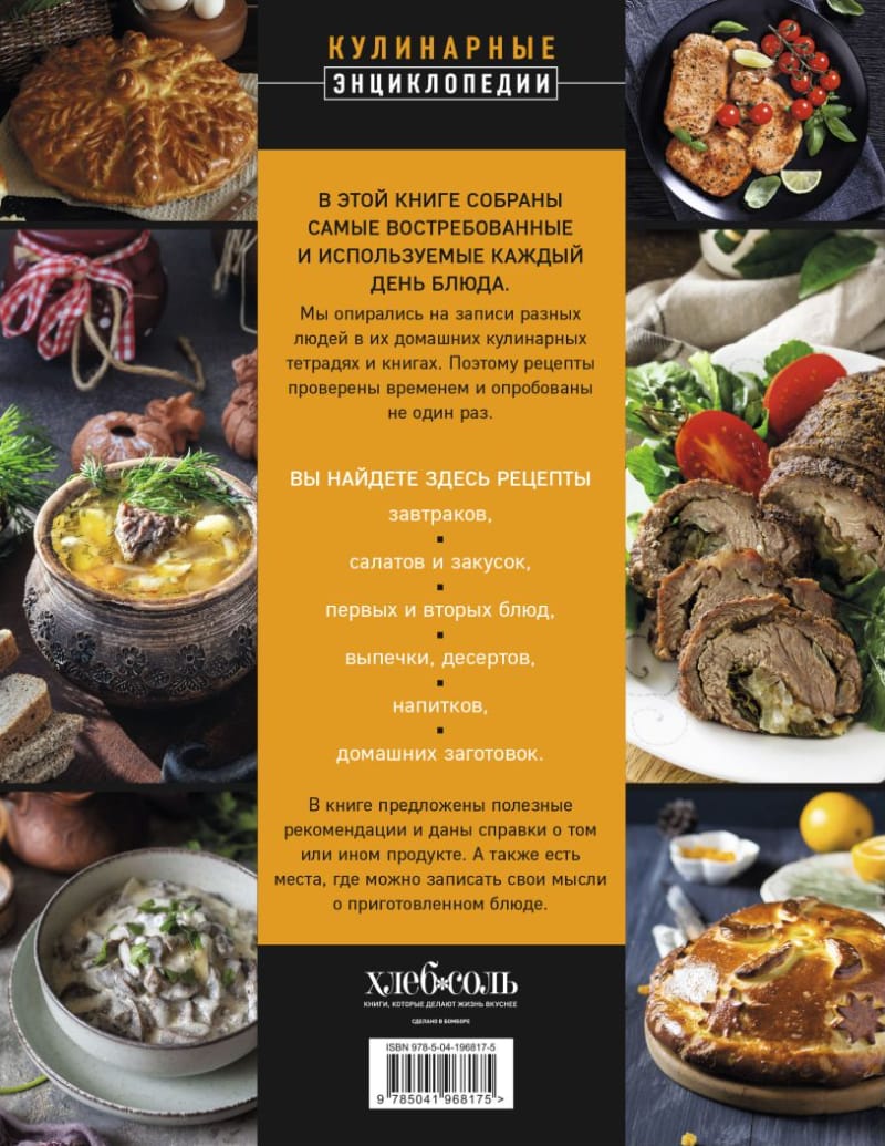 Эта книга, в которой нуждается почти каждая хозяйка. Весьма затруднительно каждый день думать, что бы приготовить на следующий день. Здесь вы найдет 90 завтраков, 120 первых блюд, 340 вторых, 80 десертов и выпечки, и помимо этого — рецепты напитков и домашних заготовок. Для удобства все рецепты пронумерованы. Они тщательно отбирались, были использованы различные источники, в том числе домашние записи разных людей. Все это обрабатывалось и несколько раз перечитывалось. Книга снабжена полезными советами и комментариями, местами, где можно записать собственные наблюдения, и алфавитным указателем рецептов для лучшего поиска по блюдам. Также в ней присутствуют цветные вкладки, на которых проиллюстрированы некоторые блюда из книги. Пусть она облегчит поиск «чего бы приготовить на завтра»!