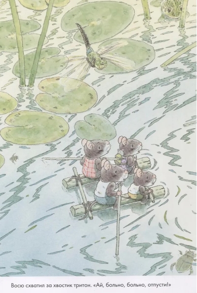 В жаркий летний день мышиное семейство отправляется купаться и строить флотилию на стрекозиный пруд. Играют блики света на воде, качается осока, а вокруг трепещут крыльями, сторожат, охотятся самые разные стрекозы! Наблюдать за ними и другими водными обитателями — целое приключение!