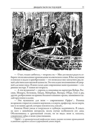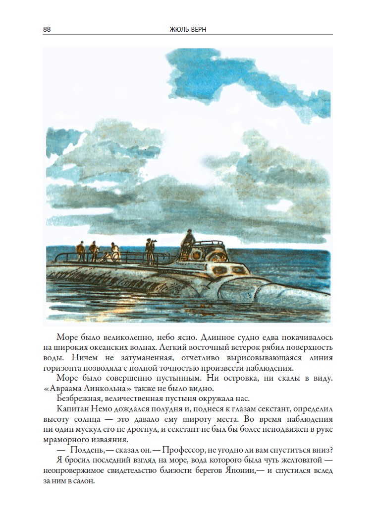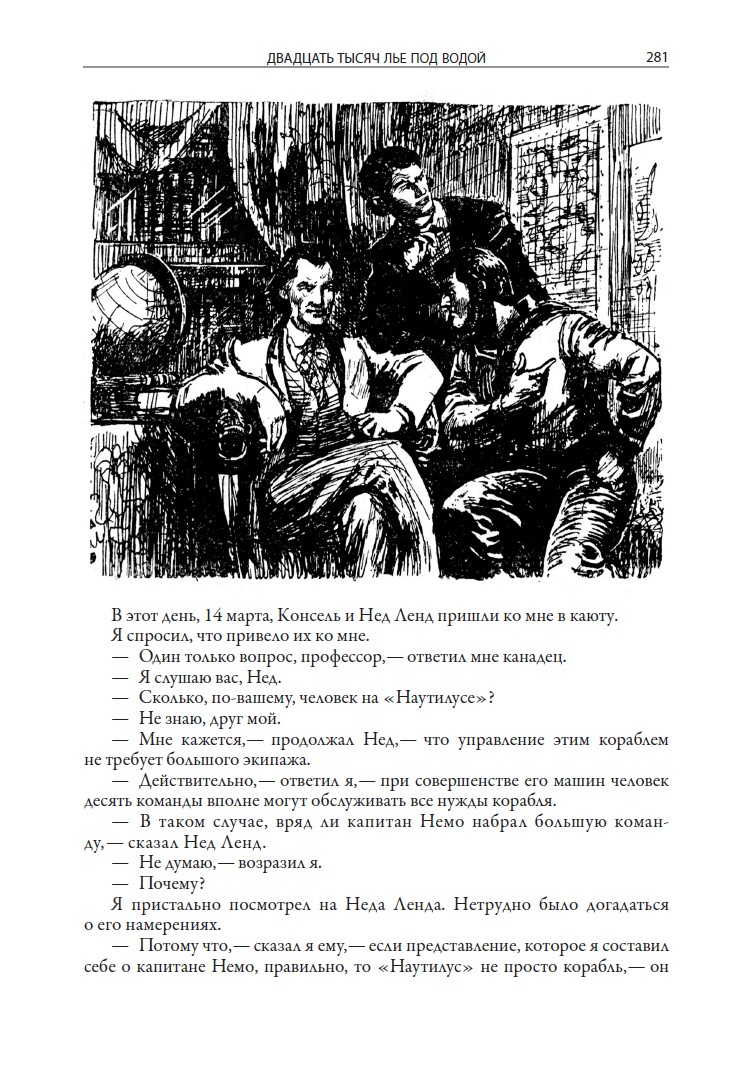 «Двадцать тысяч лье под водой» — вторая книга «Трилогии о капитане Немо». Писатель продолжает знакомить читателей с новыми героями описывая их удивительные приключения в морских глубинах. Жюль Верн придумал закрученный сюжет, столкнув героев с таинственным капитаном и его удивительным «Наутилусом», опередившим свое время. Все иллюстрации выполнены мастером книжной графики Петром Луганским, художником, великолепно передающим захватывающий сюжет пером и кистью.