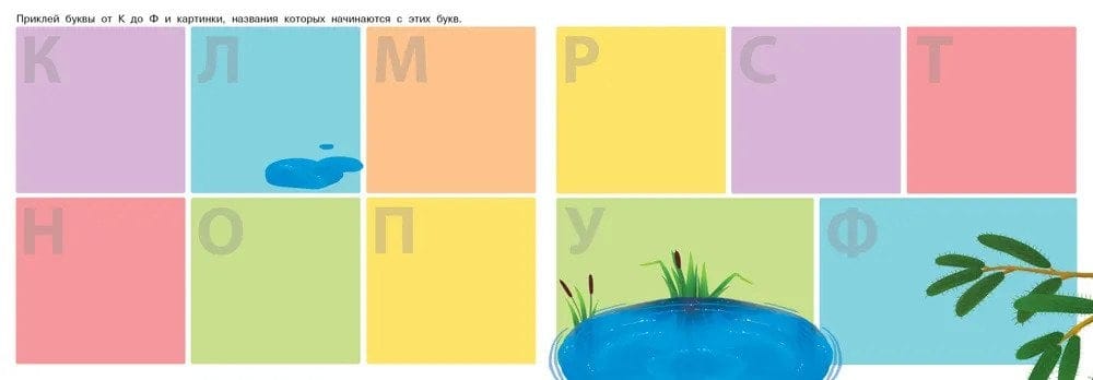 С этой книжкой вы легко выучите все буквы. Приклейте на страничку букву, найдите картинки, названия которых начинаются с этой буквы и приклейте рядом. Наклеек так много, что их можно клеить не только на страницы книжки. Заведите тетрадку, в которую будете клеить картинки и тренироваться писать буквы. Или украсьте наклейками всё, что захочется.