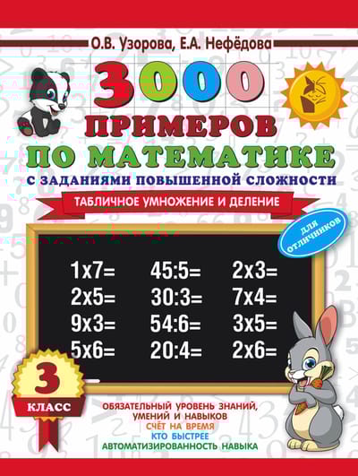 Пособие содержит 3000 математических примеров по теме «Табличное умножение и деление». Оригинальное построение материала позволяет обеспечить более глубокое его усвоение.