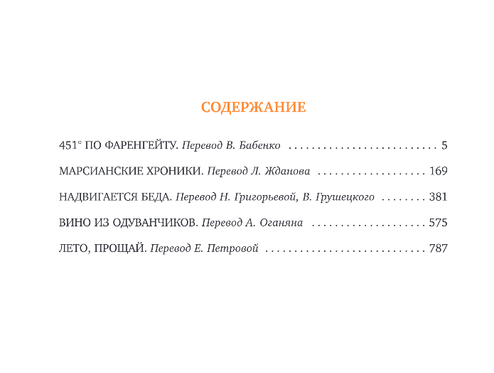 451° по Фаренгейту. Марсианские хроники. Надвигается беда. Вино из одуванчиков. Лето, прощай
