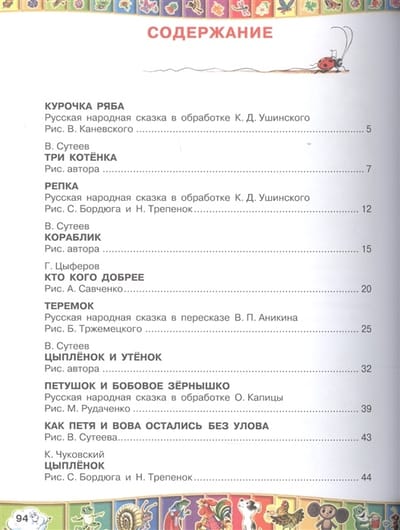 В книге собраны сказки со всего света. История из джунглей Редьярда Киплинга, африканские сказки Джоэля Харриса, итальянская сказка о летающем Ренатино Ренато Рашела, храбрый Крошка Енот американской писательницы Лилиан Муур, отчаянный Козлёнок‑счетовод норвежского писателя Алфа Прёйсна и многое другое. Объединяют сказочные истории рисунки художника, заслуженного деятеля искусств РСФСР Владимира Григорьевича Сутеева. Иллюстрации к «Слонёнку» Редьярда Киплинга публикуются впервые. Рисунки В. Сутеева к «Сказкам дядюшки Римуса» Дж. Харриса и к истории Ренато Рашела «Ренатино не летает по воскресеньям» публикуются первый раз за последние 20 лет. Для младшего школьного возраста.