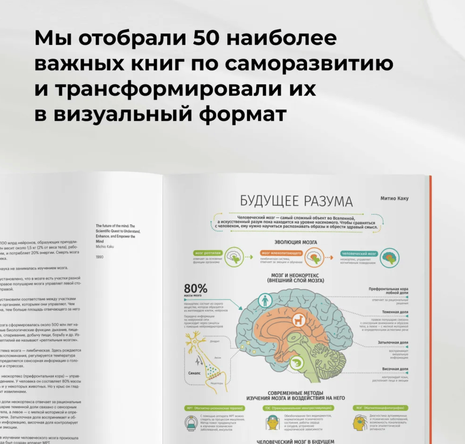 Не хватает времени, чтобы разобраться в себе? В этом визуальном гиде собраны главные идеи из 50 бестселлеров по саморазвитию в инфографике: от привычек и мышления до лидерства и энергии. Сильные идеи, короткие формулы, практичные инсайты — все, чтобы начать менять свою жизнь к лучшему уже сегодня.