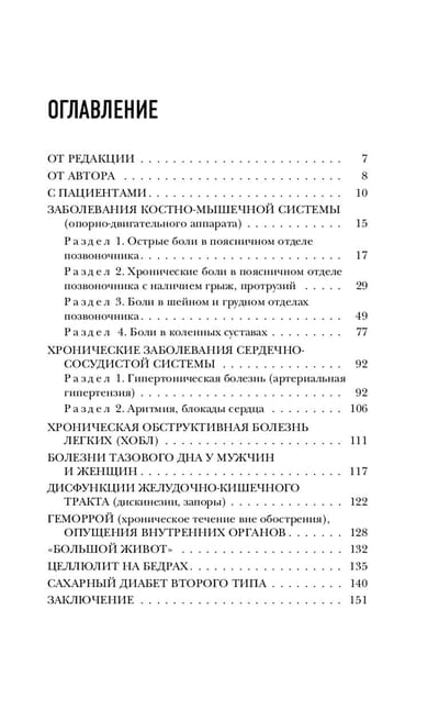 Предлагаемые упражнения удачно систематизированы по группам заболеваний, поэтому каждый читатель легко найдет те из них, которые помогут именно ему. Что делать при болях в шее или пояснице? Какие упражнения можно делать при гипертонии и опущениях внутренних органов?