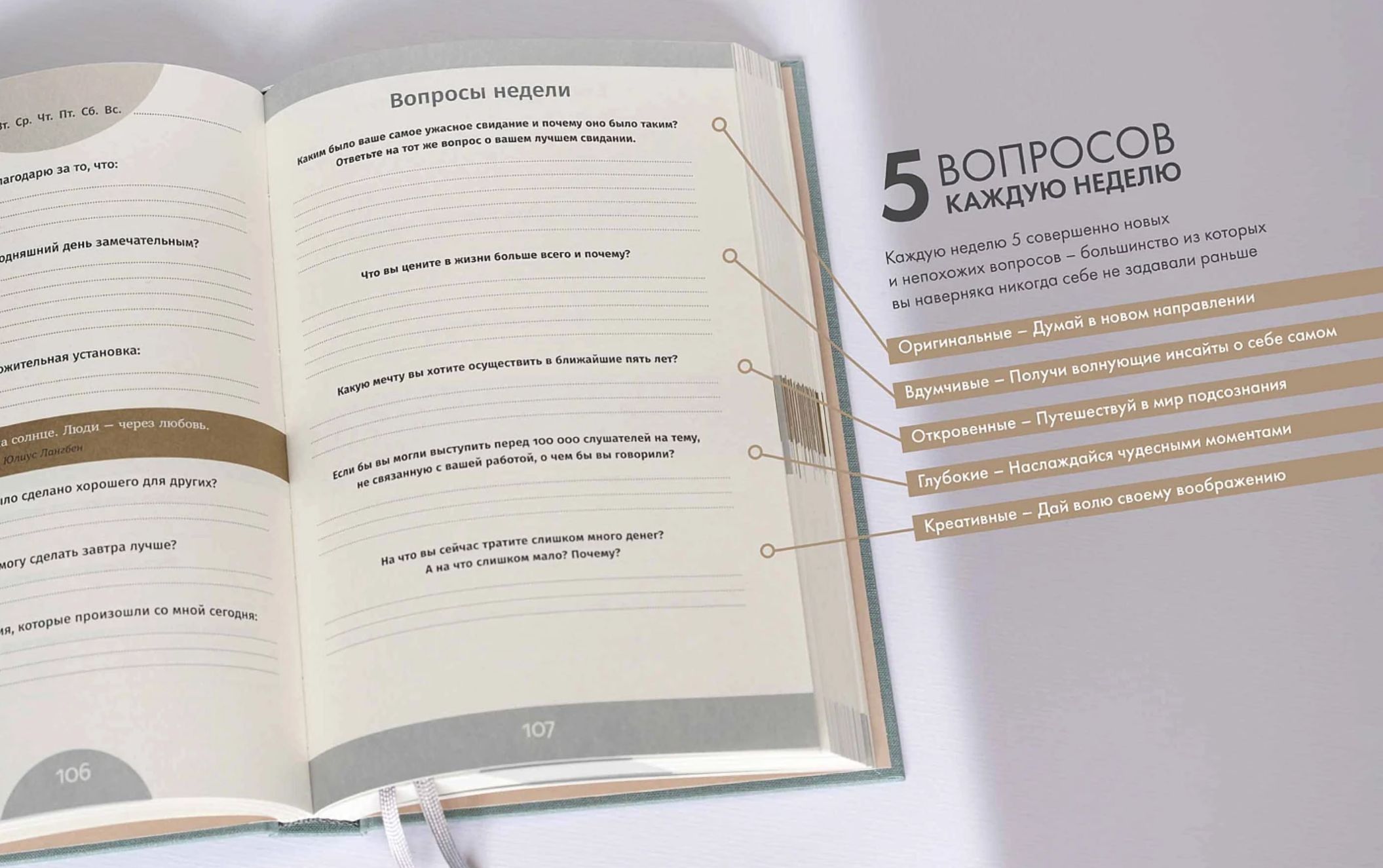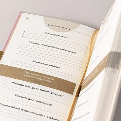 Счастье не является результатом везения или случайного стечения обстоятельств. Стать счастливым помогают правильные установки и образ мыслей. 3 минуты утром и 3 минуты вечером — столько времени займет выработка полезных привычек, которые сделают вашу жизнь осознаннее, гармоничнее, а значит — счастливее. Проверенные на практике принципы позитивной психологии и нейробиологии помогут вам достичь целей, пережить трудные моменты, улучшить отношения с другими людьми и идти по жизни уверенно. С ежедневником вы сможете улучшать свою жизнь постоянно и проактивно, шаг за шагом и каждый день!