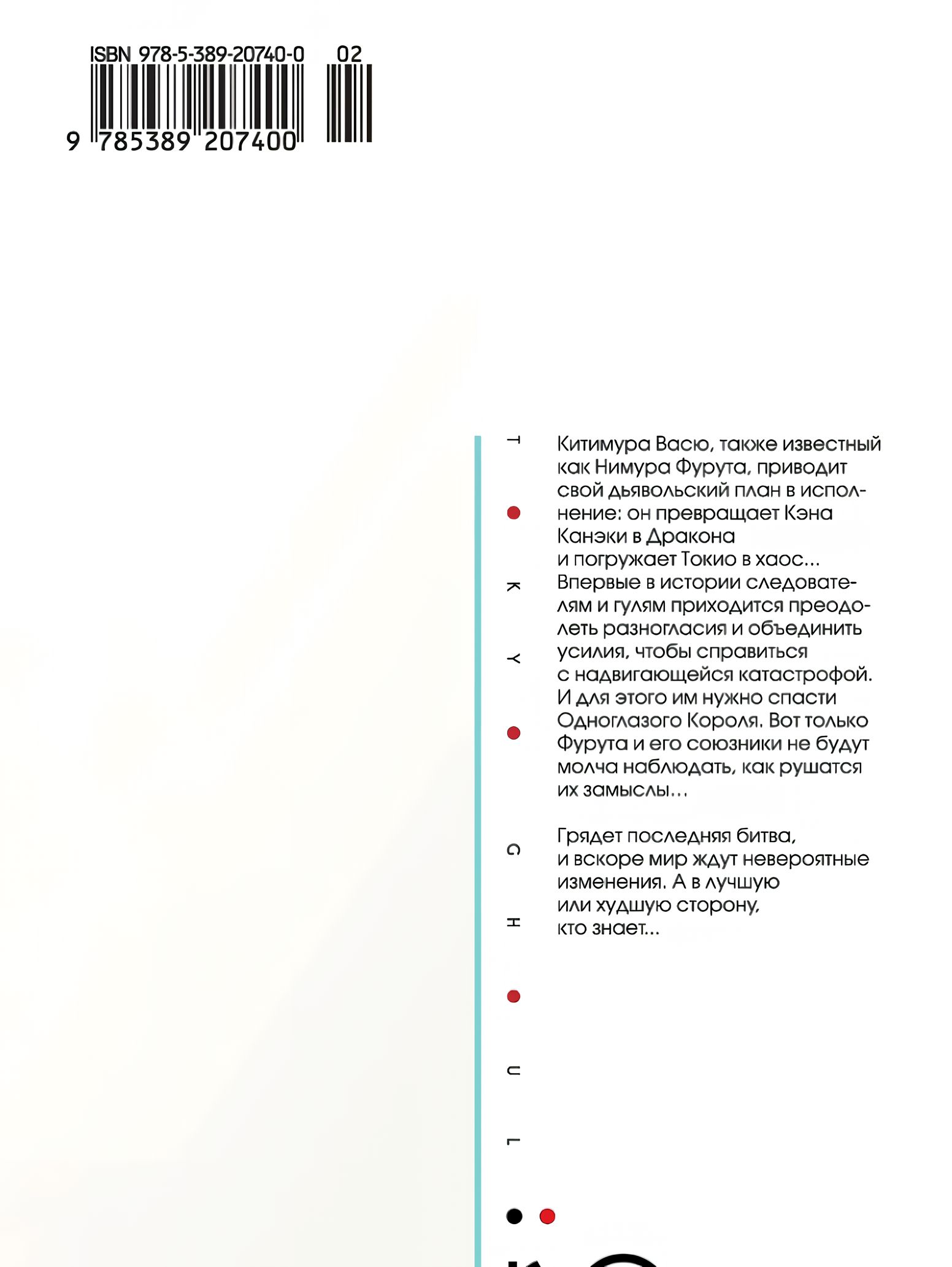 Китимура Васю, также известный как Нимура Фурута, приводит свой дьявольский план в исполнение: он превращает Кэна Канэки в Дракона и погружает Токио в хаос... Впервые в истории следователям и гулям приходится преодолеть разногласия и объединить усилия, чтобы справиться с надвигающейся катастрофой. И для этого им нужно спасти Одноглазого Короля. Вот только Фурута и его союзники не будут молча наблюдать, как рушатся их замыслы… Грядет последняя битва, и вскоре мир ждут невероятные изменения. А в лучшую или худшую сторону, кто знает...