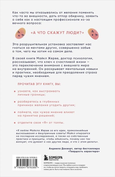В этой книге Майкл Жерве, доктор психологии, рассказывает, что ключ к счастливой жизни — это переключение внимания с внешнего мира на внутренний. Он раскрывает ментальные навыки и практики, необходимые для преодоления страха перед чужим мнением.