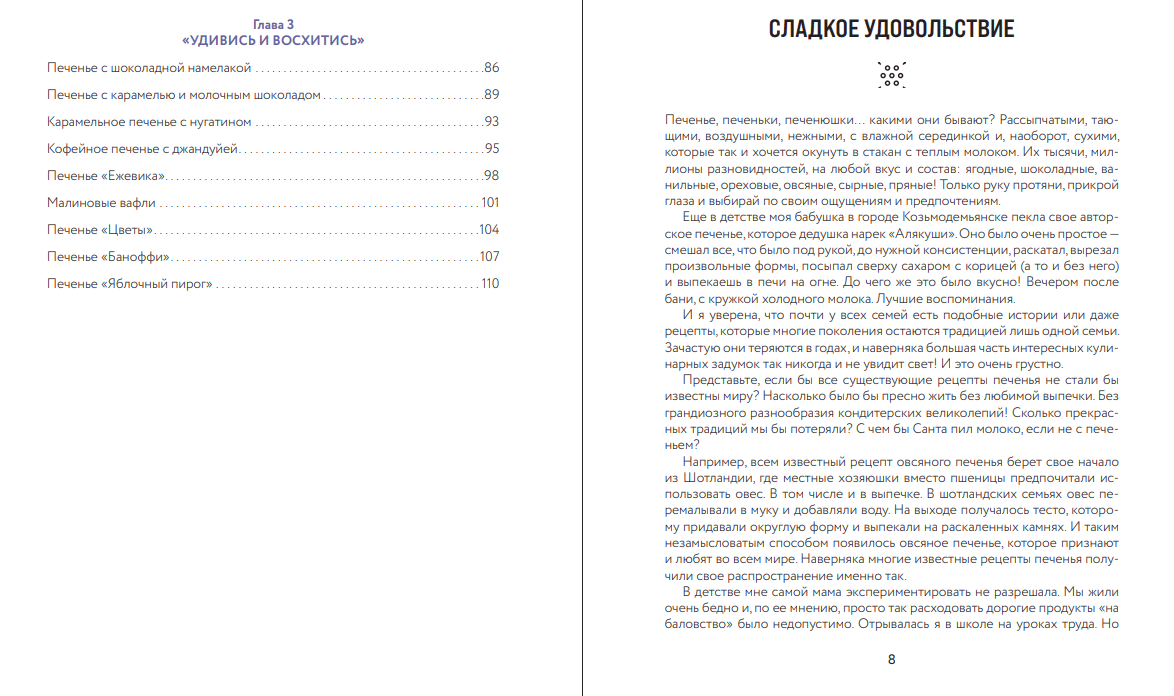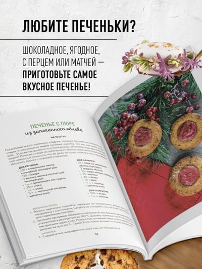 Признанный кондитер международного класса, а также популярный блогер Нина Тарасова написала книгу, где вы непременно найдете рецепт печенья, которое станет вашим любимым. В книге три главы: первая, и самая большая, глава предлагает приготовить простое авторское печенье. Рецепты этого раздела идеально подойдут для готовки с детьми. Вторая глава — несладкое закусочное печенье. Третья — высокий и изящный уровень кондитерского искусства.