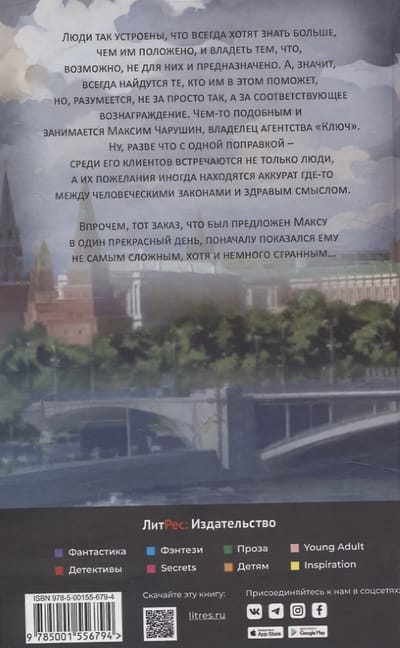 Люди так устроены, что всегда хотят знать больше, чем им положено, и владеть тем, что, возможно, не для них и предназначено. А, значит, всегда найдутся те, кто им в этом поможет, но, разумеется, не за просто так, а за соответствующее вознаграждение. Чем-то подобным и занимается Максим Чарушин, владелец агентства «Ключ». Ну, разве что с одной поправкой – среди его клиентов встречаются не только люди, а их пожелания иногда находятся аккурат где-то между человеческими законами и здравым смыслом. Впрочем, тот заказ, что был предложен Максу в один прекрасный день, поначалу показался ему не самым сложным, хотя и немного странным…