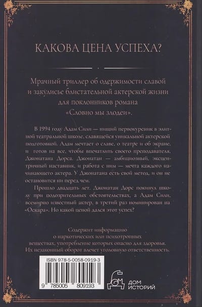 Прошло двадцать лет. Джонатан Дорс покинул школу при подозрительных обстоятельствах, а Адам Сили, всемирно известный актер, в третий раз номинирован на «Оскара». Но какой ценой дался этот успех?