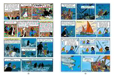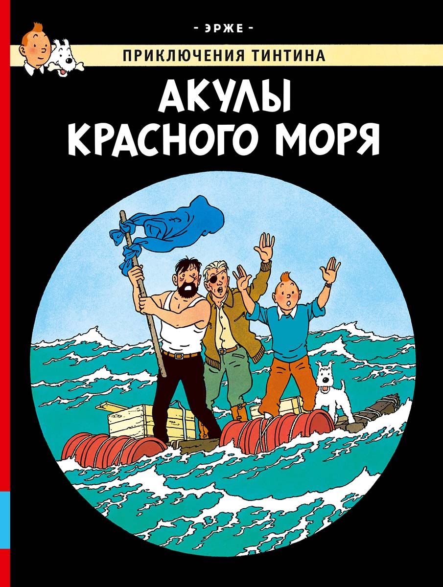 Журнальная версия 19-го альбома «Приключений Тинтина» стартовала 31 октября 1956 года и финишировала 1 января 1958-го; в том же году вышло альбомное издание. Этот том завершает «морскую» тему серии, начатую «Крабом с золотыми клешнями» и продолженную сначала «Таинственной звездой», а чуть позже пиратской дилогией («Секрет «Единорога»» и «Сокровище Красного Раккама»). Более того, в последующих историях мы не увидим Тинтина сотоварищи на борту океанских судов; единственное плавсредство, которое им всё же предстоит испытать на прочность в пяти заключительных томах, – надувная лодка в «Рейсе 714 в Сидней». Любопытная деталь: «Акулы Красного моря» установили рекорд серии по количеству персонажей, уже знакомых читателям по предыдущим альбомам. Помимо неизменных членов «близкой семьи» Тинтина (капитан Хаддок, профессор Турнесоль, Дюпонт и Дюпонд, Нестор) на страницах альбома мы встречаем генерала Алькасара (его извечный соперник Тапиока лишь упоминается, его изображения в книге нет), бывшего шефа полиции Международного сеттльмента в Шанхае Доусона, Абдуллу и его отца эмира Бен Калиш Эзаба, шейха Баб Эль-Эра (правда, его мы видим только на фотографии в газете), португальского торговца Оливейру да Фигуэйру, одиозного доктора Мюллера (здесь он скрывается под именем Мюль-паши), инфернального гангстера-миллиардера Растапопулоса, певицу Бьянку Кастафьоре, старпома Аллана Томпсона и невыносимого шутника Серафена Лампьона. Напротив, лишь один из новых персонажей появится в серии ещё раз: эстонский пилот Пётр Тамм (его мы увидим в уже упомянутом «Рейсе 714 в Сидней»).