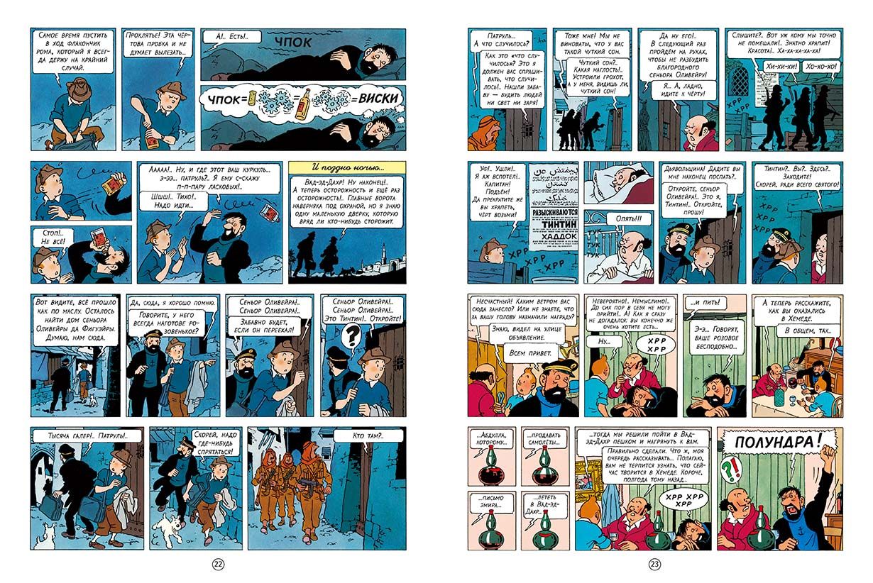 В Хемеде переворот. Тинтин и капитан Хаддок летят туда, чтобы помочь законному правителю эмиру Бен Калиш-Эзабу вернуть власть. Однако об их прибытии уже известно: в аэропорту Вад-эд-Дахра наших героев сажают в самолёт и отправляют обратно. Вскоре после взлёта на борту загорается двигатель, но пилот всё же умудряется совершить посадку на берегу Красного моря. В довершение всего в покинутом пассажирами самолёте происходит взрыв! Понимая, что всё это неспроста, Тинтин предлагает тайком вернуться в Вад-эд-Дахр, и под утро друзья уже стучатся в дверь лавки сеньора Оливейры да Фигуэйры, который рассказывает им, где найти эмира. Герои пробираются в горы, встречаются с Бен Калиш-Эзабом и узнают от него шокирующие факты о тех, кто стоит за повстанцами. Тинтин намерен помешать их преступным планам…