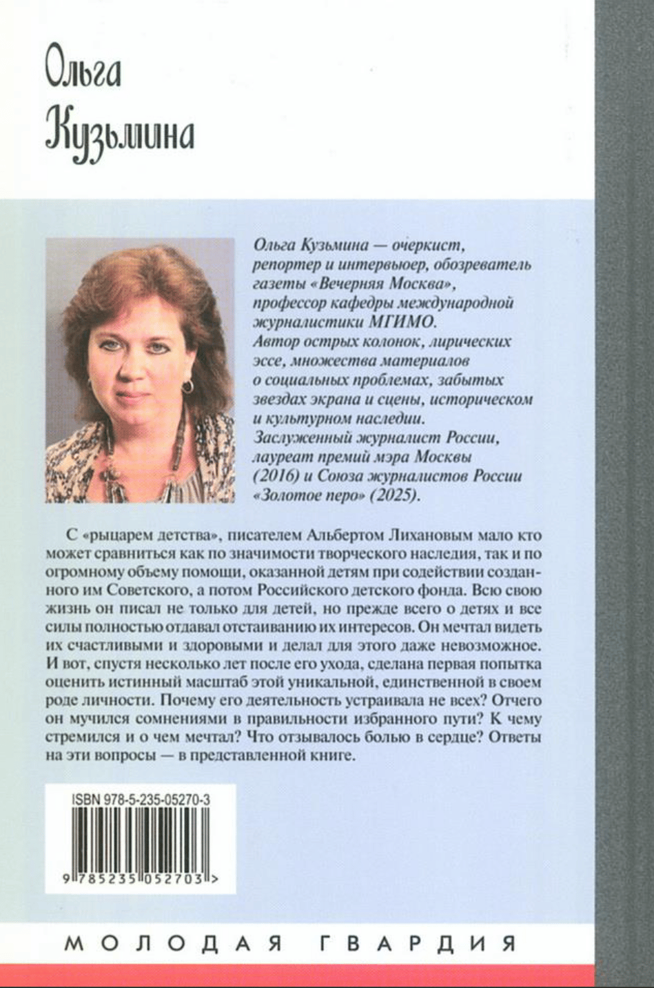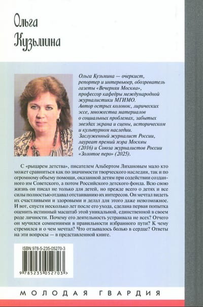 С «рыцарем детства», писателем Альбертом Лихановым мало кто может сравниться как по значимости творческого наследия, так и по огромному объему помощи, оказанной детям при содействии созданного им Советского, а потом Российского детского фонда. Всю свою жизнь он писал не только для детей, но прежде всего о детях, и все силы полностью отдавал отстаиванию их интересов. Он мечтал видеть их счастливыми и здоровыми и делал для этого порой невозможное. И вот, спустя несколько лет после его ухода, сделана первая попытка оценить истинный масштаб этой уникальной, единственной в своем роде личности. Почему его деятельность устраивала не всех? Отчего он мучился сомнениями в правильности избранного с молодых лет пути? К чему стремился и о чем мечтал? Что отзывалось болью в сердце? Ответы на эти вопросы вы найдете в представленной книге Ольги Кузьминой.
