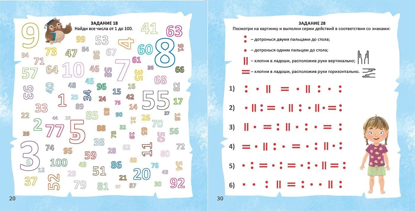 В современном «быстром» мире, где в силу большой загруженности как взрослых, так и детей, все меньше времени остается на саморазвитие, необходимы экспресс методики, которые не будут занимать мало времени, но при этом будут эффективны. В силу каждодневной однообразной целенаправленной работы мозга, связанной с профессиональной деятельностью, взрослые люди испытывают трудности при запоминании, решении задач, концентрации и переключении внимания, анализе и синтезе информации. Это связано с тем, что развиваются только определенные участки коры головного мозга и функции. Детям же для успешного обучения в школе необходимо развивать не только навыки чтения, математики и письма, но и сенсомоторику, речь, память, внимание и мышление. В чём особенность: Пособие направлено на стимулирование работы правого и левого полушарий мозга. Задания совмещают моторные и сенсорные функции: речь и чувство ритма, речь и восприятие трехмерного пространства, чувство ритма и операции с последовательностями, действия с цифрами и восприятие цвета, движение и чтение и другие. Благодаря удобному формату альбом можно брать с собой в дорогу. Занятия с пособием способствуют развитию навыков чтения и письма, математики, сенсомоторики, памяти, логического мышления, внимания, речи, воображения и мелкой моторики. Важно знать родителям: Данное пособие актуально как для детей от 5 лет так и для взрослых, которые замечали у себя следующие симптомы: забывчивость, невозможность выразить свои мысли, чрезмерную усталость, рассеянность. Рекомендовано как для индивидуальных, так и для групповых занятий, а также для игр в семье, в компании и в поездках. Как работать с пособием: Выполняйте упражнения каждый день. Не выполняйте много упражнений, достаточно 3-5 страниц в день. Занимайтесь в одно и то же время. Желательно в утренние часы, т.к. мозг еще не успел устать. Усложняйте задания, по мере освоения материала. Постепенно увеличивайте темп. В начале занятий Вы почувствуете результат, в какой – то момент возможно развитие будет продолжаться, но менее ощутимо. Самое главное не бросать и продолжать работать! Мотивируйте себя и ребенка.