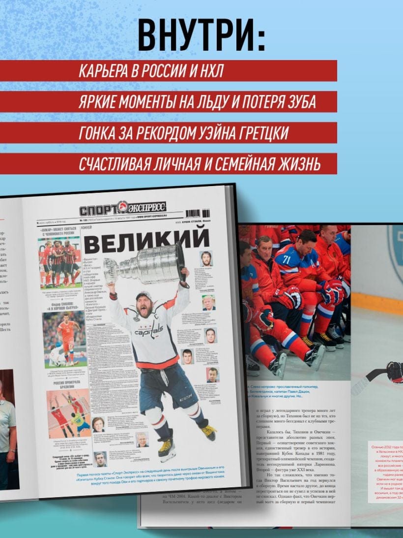 Перед сезоном Национальной хоккейной лиги — 2024/25 российский форвард «Вашингтон Кэпиталз» отставал от рекорда всех времен всего на 41 шайбу, к моменту, когда книга вышла в свет и вы взяли ее в руки, в 20-м сезоне Овечкина в НХЛ дистанция стала еще меньше.