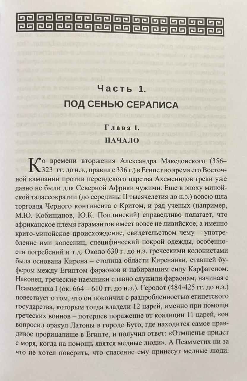 Школа александрийских боевых механиков прошла, в лице Архимеда Сиракузского, блестящий и суровый экзамен во II Пуническую войну, который ей задали железные легионы Рима, а Александрийский маяк по праву считался одним из Семи чудес Древнего мира. По словам Геронда, «все, что может существовать или случиться на земле, есть в Египте: богатство, спорт, власть, голубое небо, слава, зрелища, философы, золото, прекрасные юноши, храмы богов Адельфов, добрый царь, Мусей, вино, все хорошее, чего можно пожелать, и женщины, столько женщин… Афродита здесь как у себя дома». И хотя нельзя объять необъятное, в этой книге мы постараемся рассказать обо всем этом.