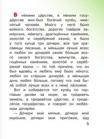 А крупные буквы и ударения сделают знакомство со сказкой более легким и удобным.