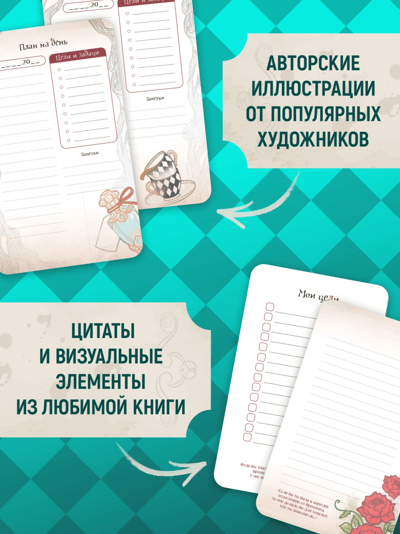 Потрясающий ежедневник по вселенной «Алисы в Зазеркалье» для твоих записей, творческих идей и планирования. Ваши мысли будут сопровождать цитаты из любимой книги! Для всех, кто любит красивые ежедневники и блокноты, которые качественно помогут в вашей работе и творчестве.
