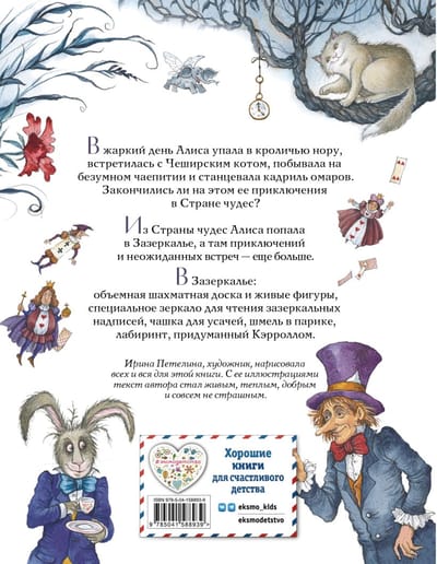 Приключения Алисы Льюиса Кэрролла, английского классика XIX века, будут интересны как детям, так и взрослым. Иллюстрации Ирины Петелиной гармонично вплетаются в сюжет этих удивительных историй.