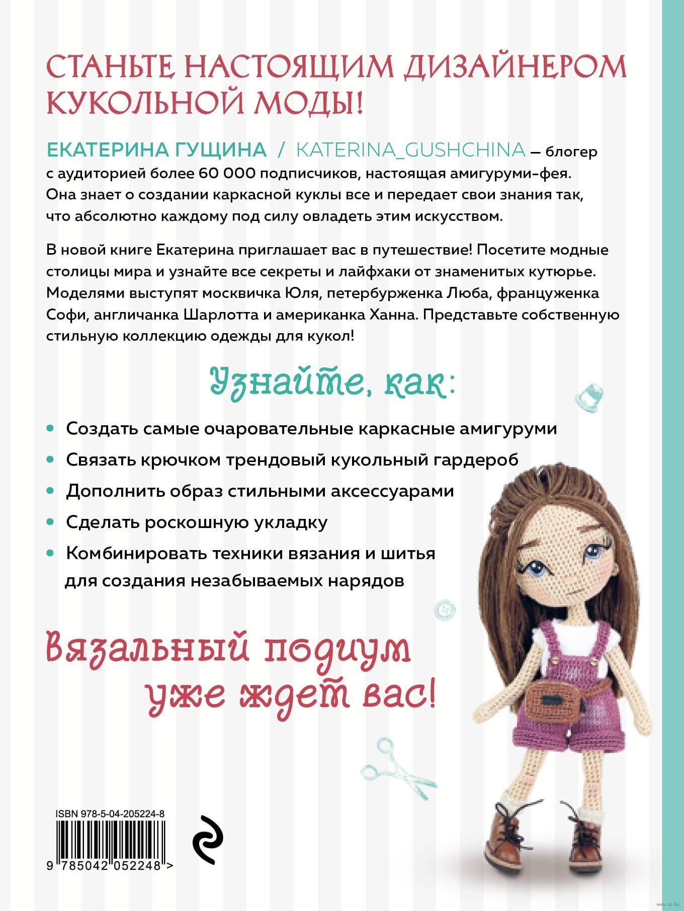 В своей новинке популярный блогер Екатерина Гущина приглашает вас за кулисы недели вязаной моды. Посетите модные столицы мира и узнайте все секреты и лайфхаки от знаменитых кутюрье. Моделями выступят москвичка Юля, петербурженка Люба, француженка Софи, американка Ханна и англичанка Шарлотта. Представьте собственную стильную коллекцию одежды для кукол!