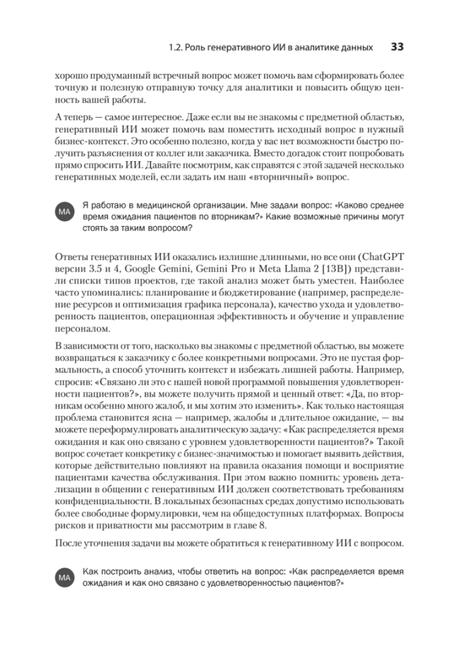 Эта книга — практическое руководство для тех, кто превращает данные в решения. Шаг за шагом вы разберетесь, как современные методы искусственного интеллекта помогают не просто интерпретировать массивы информации, но и находить скрытые закономерности, прогнозировать будущее и создавать конкурентные преимущества для бизнеса. Вы получите системное понимание инструментов анализа, узнаете о лучших практиках применения машинного обучения и научитесь интегрировать ChatGPT в ежедневные рабочие процессы.