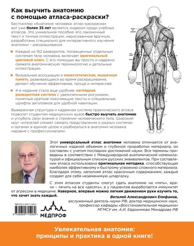 Бестселлер "Анатомия человека: атлас-раскраска" вот уже более 35 лет является лидером среди учебных атласов. Это уникальное пособие: его лаконичный текст и точные иллюстрации, нарисованные вручную, разработаны специально для интерактивного изучения анатомии – раскрашивания.