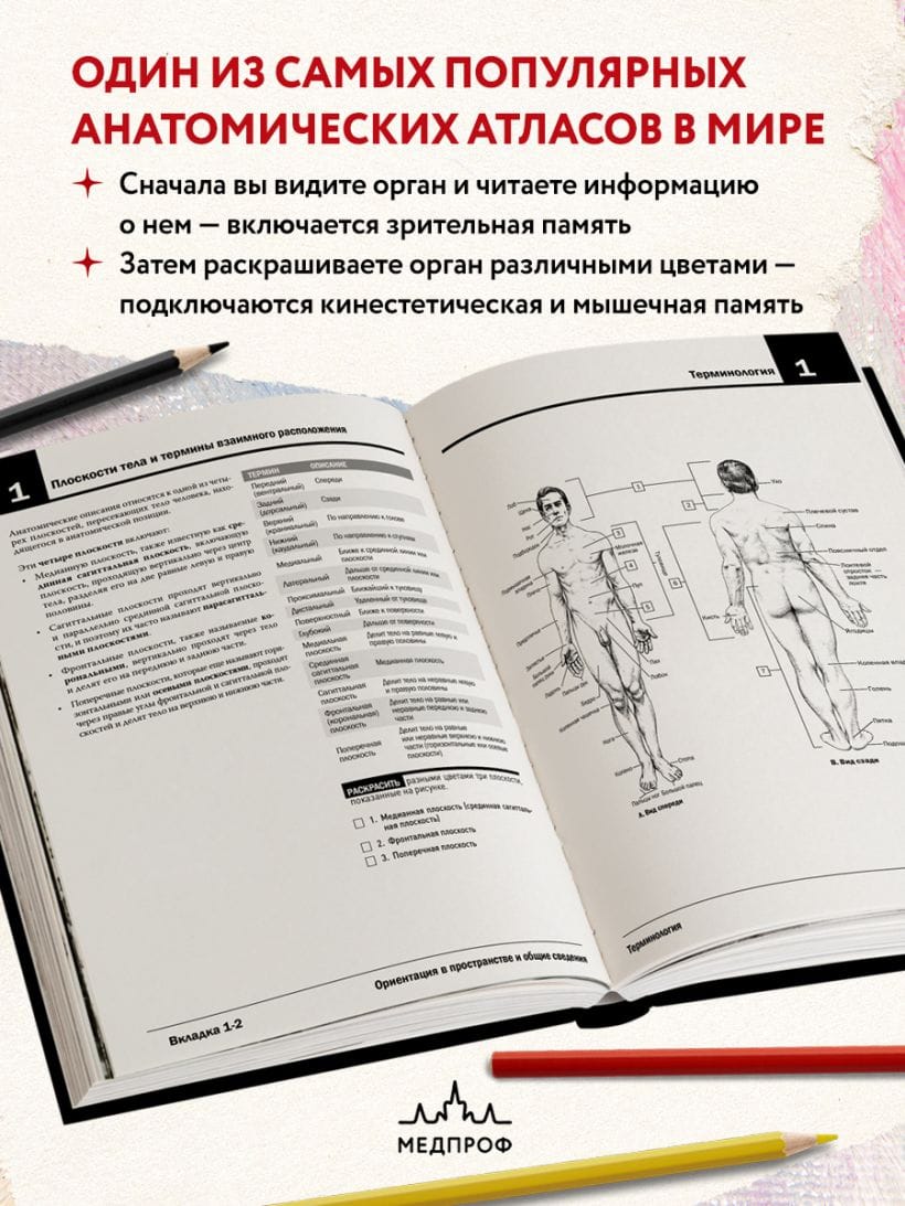 Раскрашивание - самый действенный метод изучения строения человеческого тела. И если вы все еще считаете, что анатомия — это скучно - Забудьте! Подготовьте цветные карандаши и настройтесь на увлекательное путешествие по нашему организму. Пробегитесь по позвонкам, пересчитайте ребра, посетите зоны головного мозга, прогуляйтесь по лабиринтам нервов. Устали от долгого похода? Отдохните, почитайте увлекательные факты в клинических заметках и пройдите тесты для самоконтроля. Секрет методики, применяемой в этой книге, заключается в том, что сначала вы видите орган и читаете информацию о нем, так включается зрительная память. Затем вы выбираете при помощи руководства по цветам каким цветом и что вы будете рисовать и раскрашиваете орган различными цветами, так включаются кинестетическая и мышечная память. Учить и изучать анатомию человека еще никогда не было так легко и интересно!