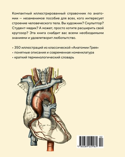 Книга содержит 350 великолепных цветных иллюстраций, взятых из классической «Анатомии Грея», самого известного учебника по анатомии в англоязычном мире, снабжены в этом издании лаконичными и понятными описаниями. Вся номенклатура приведена в соответствие современным требованиям, а используемые термины объясняются в кратком словаре. Компактный и удобный формат делает эту книгу незаменимым пособием для всех, кто хочет получить четкое представление о строении и функциях органов и систем человеческого тела. Следуя задуманному Греем порядку изложения, мы начинаем с описания и демонстрации скелета, после чего продвигаемся к более поверхностным отделам тела, объясняя, из чего они состоят, как называются, какую функцию и каким образом выполняют. Каждая кость, каждый сустав, каждый орган показаны в разных ракурсах и в соотношении с окружающими их тканями и органами. Мы стремились создать как можно более доступную для широкого круга читателей книгу и сделать текст лишь подспорьем для усвоения материала из превосходных черно-белых и цветных рисунков». (Кристофер Джозеф)