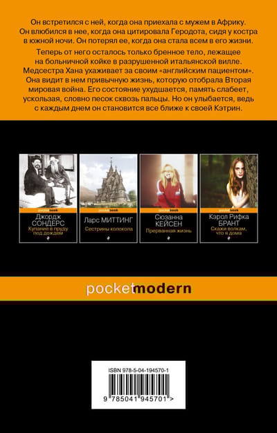 «Английский пациент» — история, удостоенная главных книжных наград. Роман получил Букеровскую премию в 1992 году. В 2018 году «Английский пациент» был удостоен специальной премии «Золотой Букер», которая была приурочена к 50-летию Букеровской премии. Она присуждается по итогам голосования читателей, посчитавших эту книгу лучшим романом из букеровского списка за 50 лет. Книга была адаптирована для экранизации в 1996 году режиссером Энтони Мингеллой. Фильм получил девять «Оскаров», включая «Лучший фильм» и «Лучший режиссер».