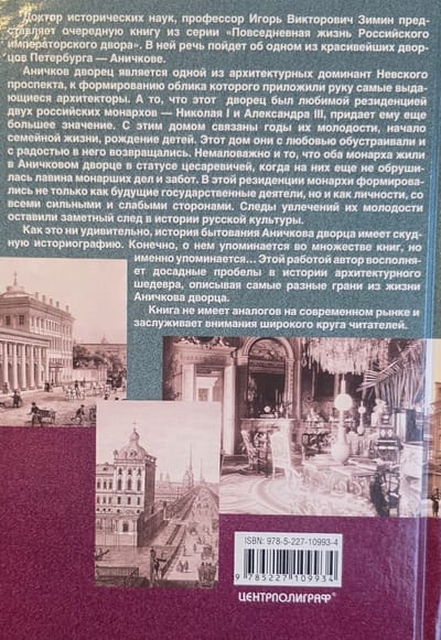 Доктор исторических наук, профессор Игорь Викторович Зимин представляет очередную книгу из серии «Повседневная жизнь Российского императорского двора». В ней речь пойдет об одном из красивейших дворцов Петербурга — Аничкове. Аничков дворец является одной из архитектурных доминант Невского проспекта, к формированию облика которого приложили руку самые выдающиеся архитекторы. Но еще большее значение дворец имеет как любимая резиденция двух российских монархов — Николая I и Александра III. С этим домом связаны годы их молодости, начало семейной жизни, рождение детей. Этот дом они с любовью обустраивали и с радостью в него возвращались. Немаловажно и то, что оба монарха жили в Аничковом дворце в статусе цесаревичей, когда на них еще не обрушилась лавина монарших дел и забот. В этой резиденции монархи формировались не только как будущие государственные деятели, но и как личности, со всеми сильными и слабыми сторонами. Следы увлечений их молодости оставили заметный след в истории русской культуры. Как это ни удивительно, история бытования Аничкова дворца имеет скудную историографию. Конечно, о нем упоминается во множестве книг, но именно упоминается… Этой работой автор восполняет досадные пробелы в истории архитектурного шедевра, описывая самые разные грани из жизни Аничкова дворца. Книга не имеет аналогов на современном рынке и заслуживает внимания самого широкого круга читателей.