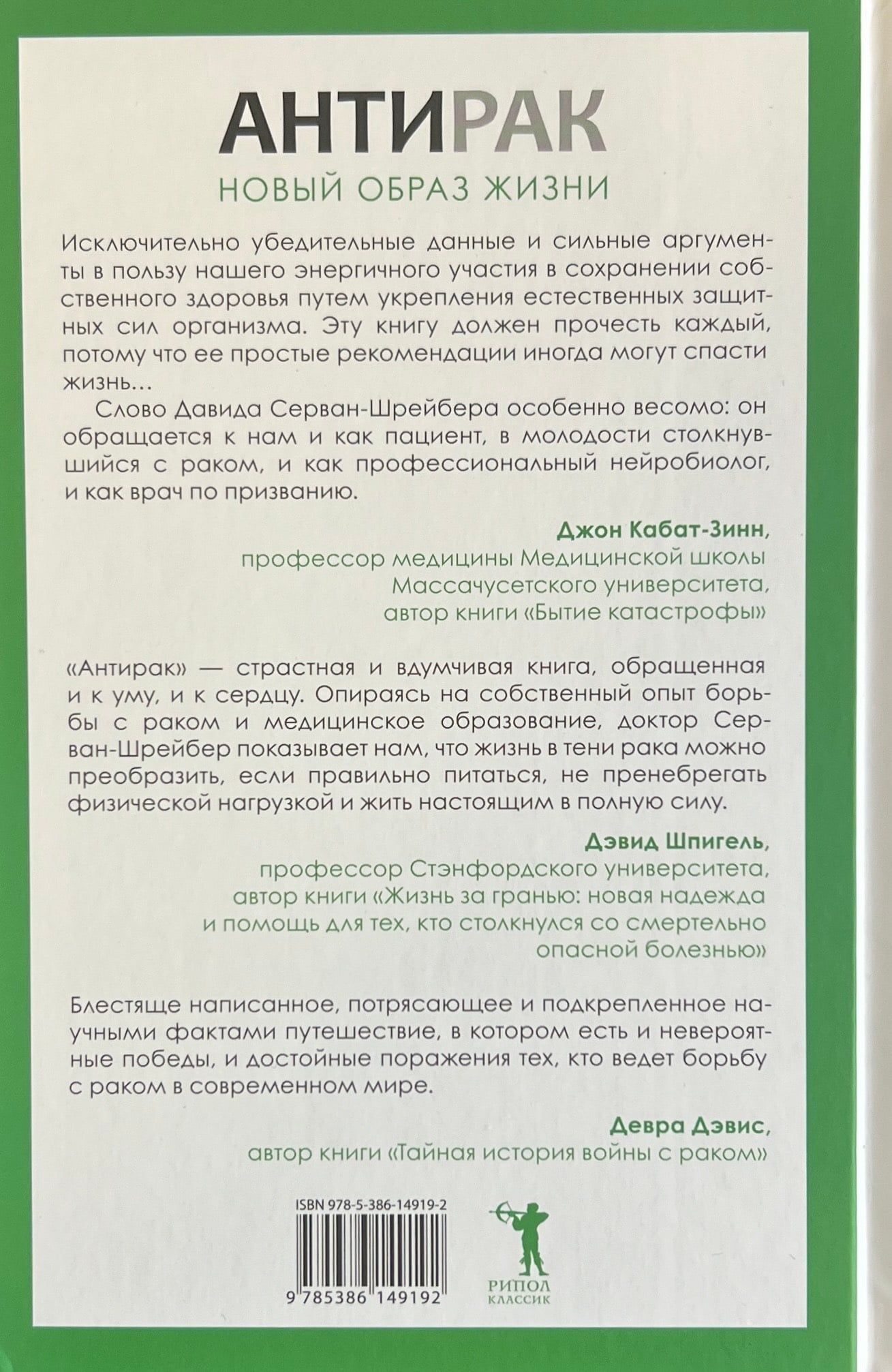 Автор этой книги, врач, которому в 30 лет поставили диагноз "рак", уже 17 лет успешно сражается с болезнью и живет полноценной жизнью. Он просто и доступно рассказывает читателю о природных механизмах защиты от рака - начиная с правильного питания и заканчивая правильным отношением к ситуации.  В книге описано множество случаев из практики как самого автора, так и его коллег-онкологов, представлены факты, рецепты, таблицы и ссылки на ведущие научные издания. Как следует поступать, чтобы не запустить механизм необратимого роста раковых клеток? Что делать, если этот механизм уже запущен? Как защитить себя и своих близких?