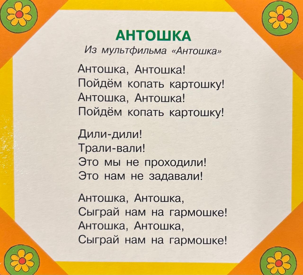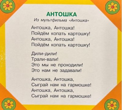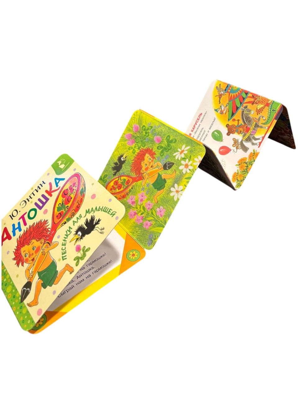 В эту книжку-раскладушку вошли песенки для самых маленьких: Чунга-чанга», «Антошка» и «Весёлая карусель».