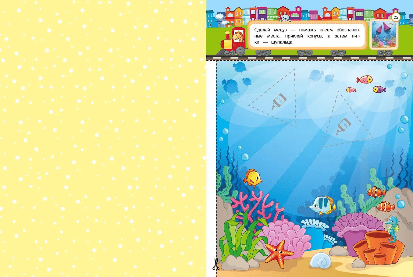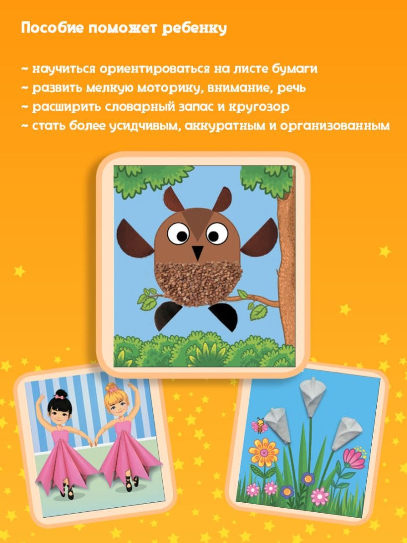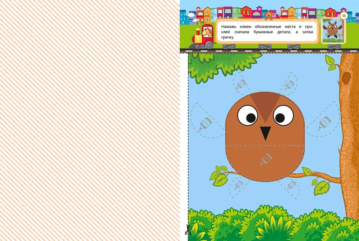 Аппликация-вырезалка поможет ребёнку развить творческие способности и станет хорошей альтернативой гаджетам. Благодаря интересным сюжетам и постепенно усложняющимся заданиям ребёнок разовьёт мелкую моторику, логическое и пространственное мышление, фантазию, внимание, воображение, подготовит руку к письму, расширит словарный запас и кругозор. Кроме того, занимаясь, ребёнок научится пользоваться ножницами и клеем. Все эти навыки помогут малышу почувствовать уверенность в своих силах, ведь ситуация успеха очень важна в обучении ребёнка. Пособие содержит заготовки для 20 творческих занятий. С помощью готовых шаблонов можно провести с малышом увлекательные занятия по классической аппликации, а также с нестандартными материалами (нитки, макароны, салфетки, ватные палочки, фрукты). Каждый шаблон содержит основу для поделки, текст задания для ребёнка, инструкцию для взрослых (что понадобится, как выполнять, на что обратить внимание малыша), а также пример выполненного задания. В конце книги ребёнка ожидает сюрприз — диплом за старание и выполнение всех заданий.