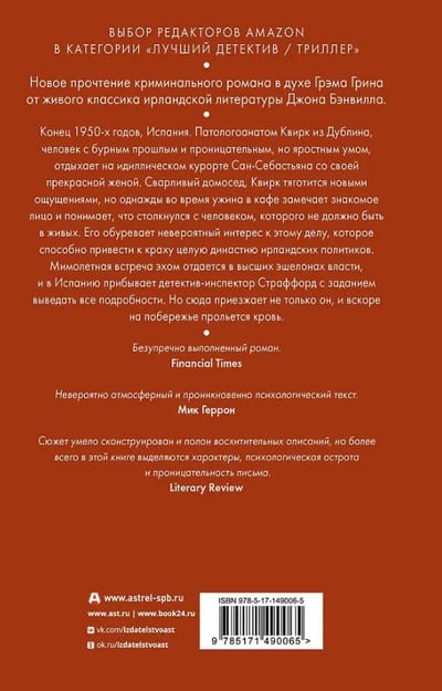 Конец 1950-х годов, Испания. Патологоанатом Квирк из Дублина, человек с бурным прошлым и проницательным, но яростным умом, отдыхает на идиллическом курорте Сан-Себастьяна со своей прекрасной женой. Сварливый домосед, Квирк тяготится новыми ощущениями, но однажды во время ужина в кафе замечает знакомое лицо и понимает, что встретился с человеком, которого не должно быть в живых. Его обуревает невероятный интерес к новому делу, которое способно привезти к краху целую династию ирландских политиков. Мимолетная встреча эхом отдается в самых высших эшелонах власти, и в Испанию прибывает детектив-инспектор Страффорд с заданием выведать все подробности. Но сюда приезжает не только он, и вскоре на побережье прольется кровь.