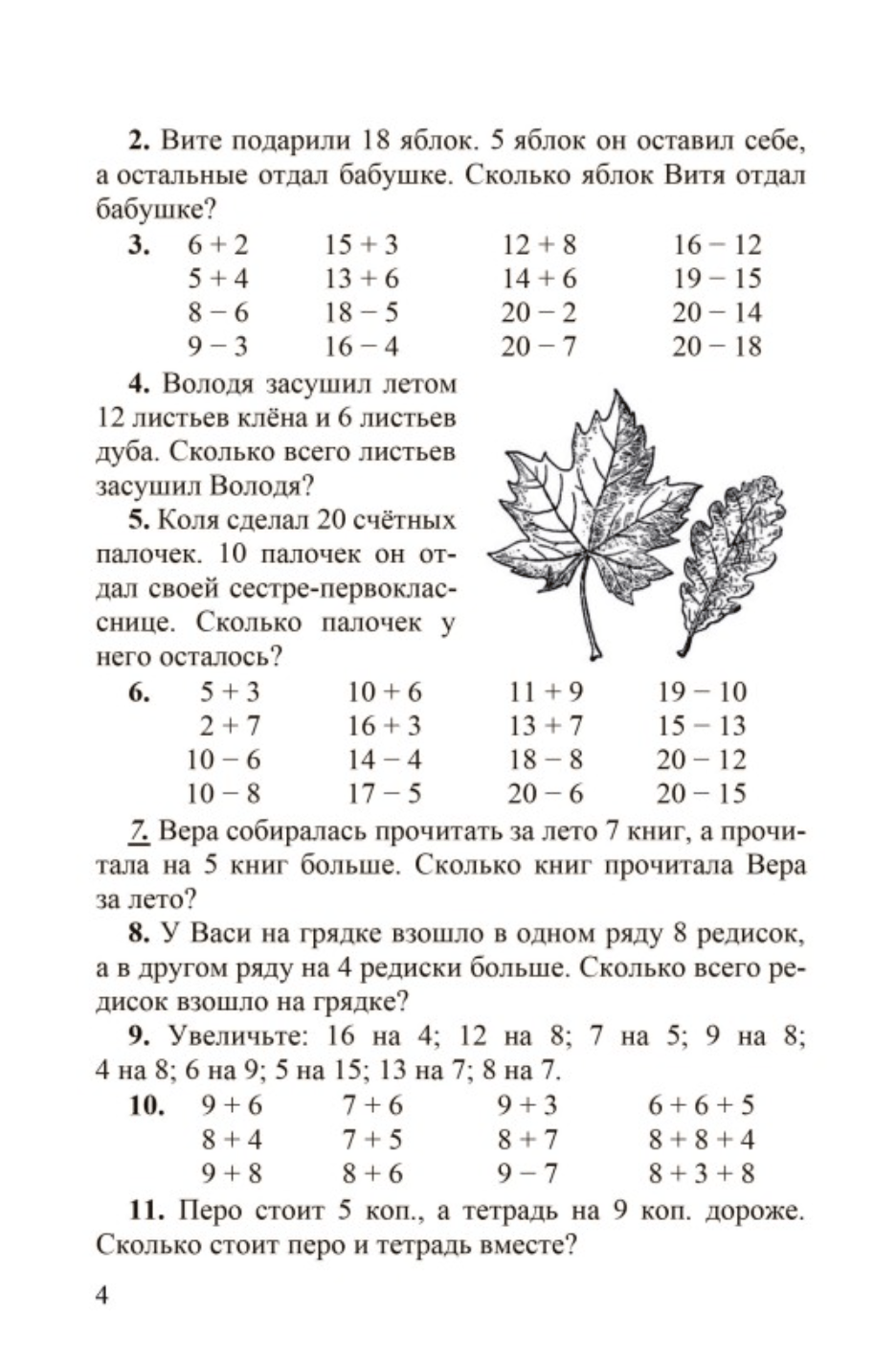 В книге собраны несложные задачи и примеры, благодаря которым второклассник сможет быстро освоить простейшие арифметические правила сложения, вычитания, умножения и деления. Задания разделены тематически и усложняются от начала книги к ее концу: начиная со счета в пределах 20 и заканчивая делением и умножением двузначных чисел на однозначные. В дополнение к этому ребенок познакомится с мерами времени, длины и веса и разберется в том, как правильно произносить и писать сложные числа. В конце книги приведены таблица для упражнений в устном счете и таблица умножения для консультаций во время занятий. Издание будет полезно как учителям начальных классов, так и родителям, которые занимаются с детьми дополнительно.
