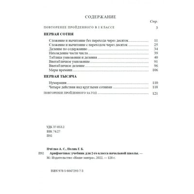 Учебник, который составили Александр Пчёлко и Григорий Поляк, был утверждён Министерством просвещения РСФСР и издан в 1957 году. Настоящее издание восстановлено с оригинала с сохранением всех примеров, задач и иллюстраций. В советские годы огромное внимание уделялось качественному фундаментальному образованию. Учебные пособия для школьников составлялись таким образом, чтобы дети получали исчерпывающие знания по всем предметам соответственно своему возрасту. В данном учебнике собраны простые упражнения, при помощи которых второклассники могут усвоить элементарные арифметические правила сложения, вычитания, умножения и деления. Условия задач изложены понятным языком, они интересны, познавательны и представляют собой маленькие сценки из жизни советских людей в те годы. Издание не перегружено иллюстрациями, каждый рисунок выполняет вспомогательную функцию и способствует тому, чтобы ребёнок легче запоминал пройденный материал. Учебник может стать прекрасным подспорьем для учителей младших классов, а также для родителей, занимающихся с детьми самостоятельно.