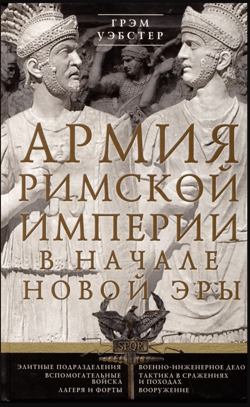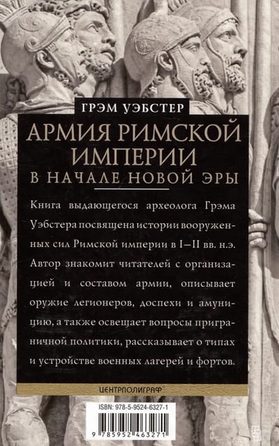 Книга выдающегося археолога Грэма Уэбстера, руководившего раскопками легионерских крепостей и фортов периода римского завоевания Британии, посвящена истории вооруженных сил Империи в I—II вв. н. э. Автор знакомит читателей с организацией и составом армии, особенностями набора и обучения солдат, тактикой в сражениях и в походах. Будучи признанным специалистом по военному снаряжению, Уэбстер подробно описывает оружие легионеров, доспехи и амуницию, а также «невоенные» аспекты армейской жизни — жалованье, награды, питание и медицинское обслуживание, погребение и религиозные обряды.