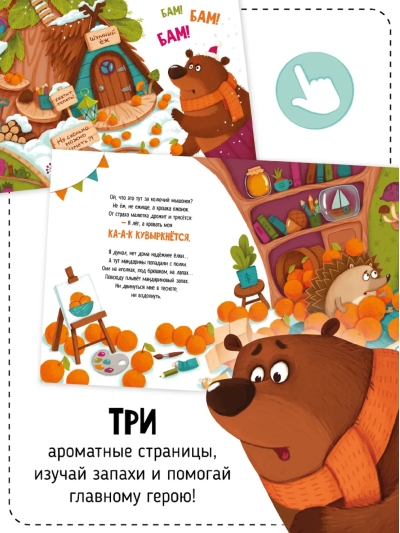 Эта обворожительная история приключилась поздней зимней ночью, когда медведь только-только устроился с чашечкой мятного чая в своей берлоге. Внезапно все в его уютном доме стало трястись! Кто же устроил это елкотрясение? Может озорные белки прыгали на батуте и врезались в стены? А может хулиганила старушка-улитка, живущая на вершине дерева? Ребенку предстоит вместе с медведем выяснить кому все-таки не спалось в ту ночь! Благодаря игровым элементам книги по ходу расследования малыш не просто встретится с 8 ароматами, а станет активным участником действий: поможет ежику стряхнуть мандаринки с иголок, а белкам пройти лабиринт из бананов! Отряхнет медведя от пряничных крошек и даже узнает, как пахнет шерсть снежного Че-Че-Человека, а также много другое! Добрая и ароматная книга для зимнего досуга! Сказочные иллюстрации Евгении Смоленцевой и веселые стихи Юлии Весовой в миг перенесут читателей в волшебный лес и влюбят в себя детей и взрослых! Детские книги книги детям книги для детей.