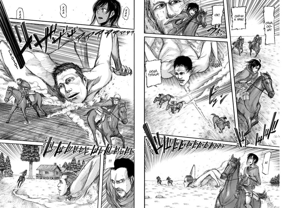 С помощью Эрена, умеющего превращаться в титана, людям удается вернуть район Трост и обезопасить стену Роза. Закрыв пробоину огромным камнем, Эрен теряет сознание, а приходит в себя в тюрьме и выдерживает допрос командира разведкорпуса Эрвина Смита. Тот принимает решение отправить экспедицию к дому отца Эрена, где, возможно, хранится тайна титанов. Но в этом непростом деле потребуется участие самого Эрена. В экспедиции участвуют и верные друзья Эрена, Армин и Микаса. Сначала все идет более или менее гладко, но внезапно появляется невероятно быстрая женщина-титан и атакует отряд...