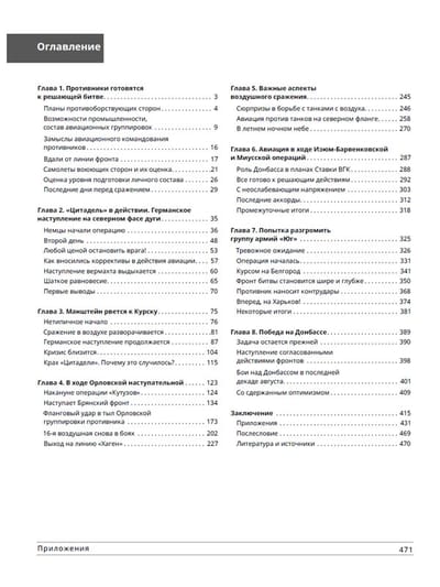 Данная книга впервые в отечественной историографии посвящена всему комплексу воздушных сражений, развернувшихся в июле – августе 1943 г. на центральных участках советско-германского фронта. Их важнейшим эпизодом стала Курская битва, куда входят оборонительная операция Центрального и Воронежского фронтов, после начала немцами стратегической операции по плану «Цитадель», и последующие наступательные операции Красной армии к северу и югу от так называемой Курской дуги. Как известно, несмотря на мощный удар, предпринятый 5 июля силами групп армий «Центр» и «Юг», поддержанных эскадрами 6-го и 4-го воздушных флотов, проломить оборону и окружить советские войска немцы не смогли. При этом с первых часов развернулись жестокие и кровопролитные бои не только на земле, но и в воздухе. Затем, когда врага удалось обескровить и остановить, развернулось контрнаступление советских войск по планам «Кутузов», в которое перешли 12 июля 1943 г. войска Западного, Брянского и Центрального фронтов, и «Полководец Румянцев», в котором участвовали войска Степного и Воронежского фронтов с 3 августа 1943 г. В книге рассматривается ход борьбы в каждой из отдельных операций, делаются выводы о том, почему летом 1943 г. люфтваффе не смогли оказать решающего влияния на ход и исход сражения на земле (в отличие от 1941 и 1942 гг.). Данная работа снабжена многочисленными фотографиями, таблицами и схемами. Она, несомненно, будет интересна широкому кругу читателей, особенно молодежи.