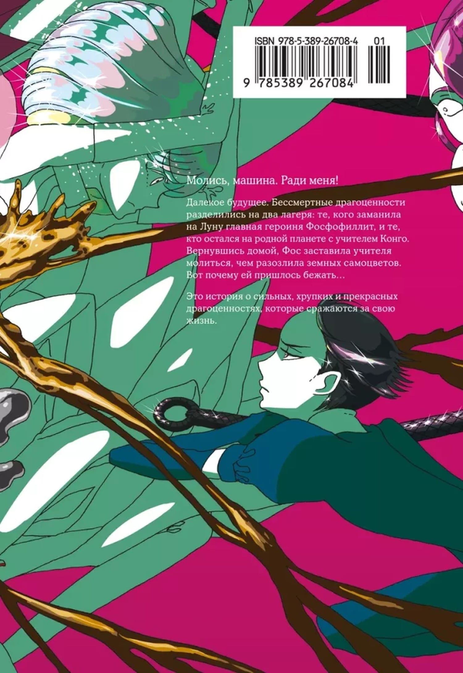 Далекое будущее. Бессмертные драгоценности разделились на два лагеря: те, кого заманила на Луну главная героиня Фосфофиллит, и те, кто остался на родной планете с учителем Конго. Вернувшись домой, Фос заставила учителя молиться, чем разозлила земных самоцветов. Вот почему ей пришлось бежать…