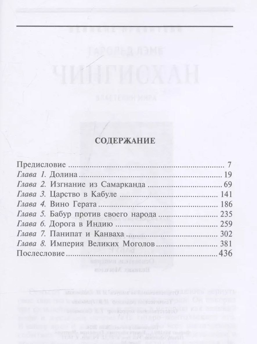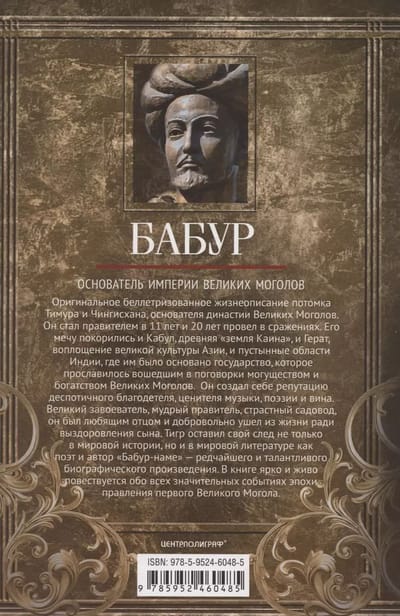 Эта книга — беллетризованное жизнеописание потомка Тимура и Чингисхана, основателя династии Великих Моголов, в которой ярко повествуется обо всех значительных событиях эпохи его правления. В ней оригинально сочетаются авторская интерпретация исторических фактов и фрагменты из «Бабур-наме» — автобиографического произведения самого Бабура, что позволяет читателю зримо ощутить атмосферу ушедшей эпохи.