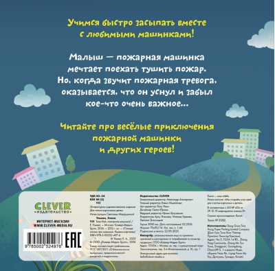 «Баю-бай, пожарная машинка!» — добрая и поучительная сказка от Елены Ульевой с яркими сюжетными иллюстрациями и плотными картонными страницами. В конце книги — расслабляющий стишок для быстрого засыпания!