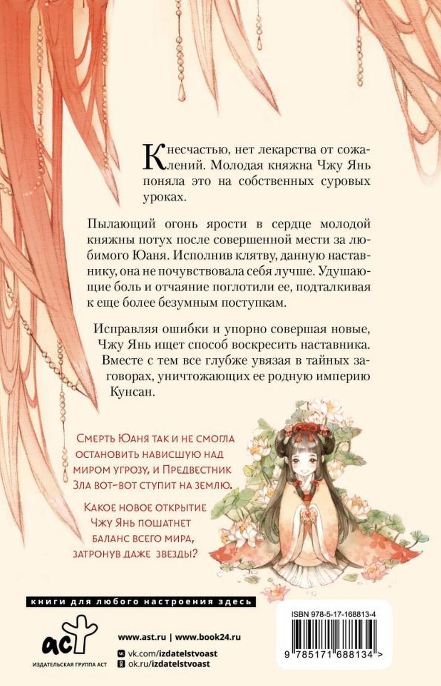 К несчастью, нет лекарства от сожалений. Молодая княжна Чжу Янь поняла это на собственных суровых уроках. Пылающий огонь ярости в сердце молодой княжны потух после совершенной мести за любимого Юаня. Исполнив клятву, данную наставнику, она не почувствовала себя лучше. Удушающие боль и отчаяние поглотили ее, подталкивая к еще более безумным поступкам.