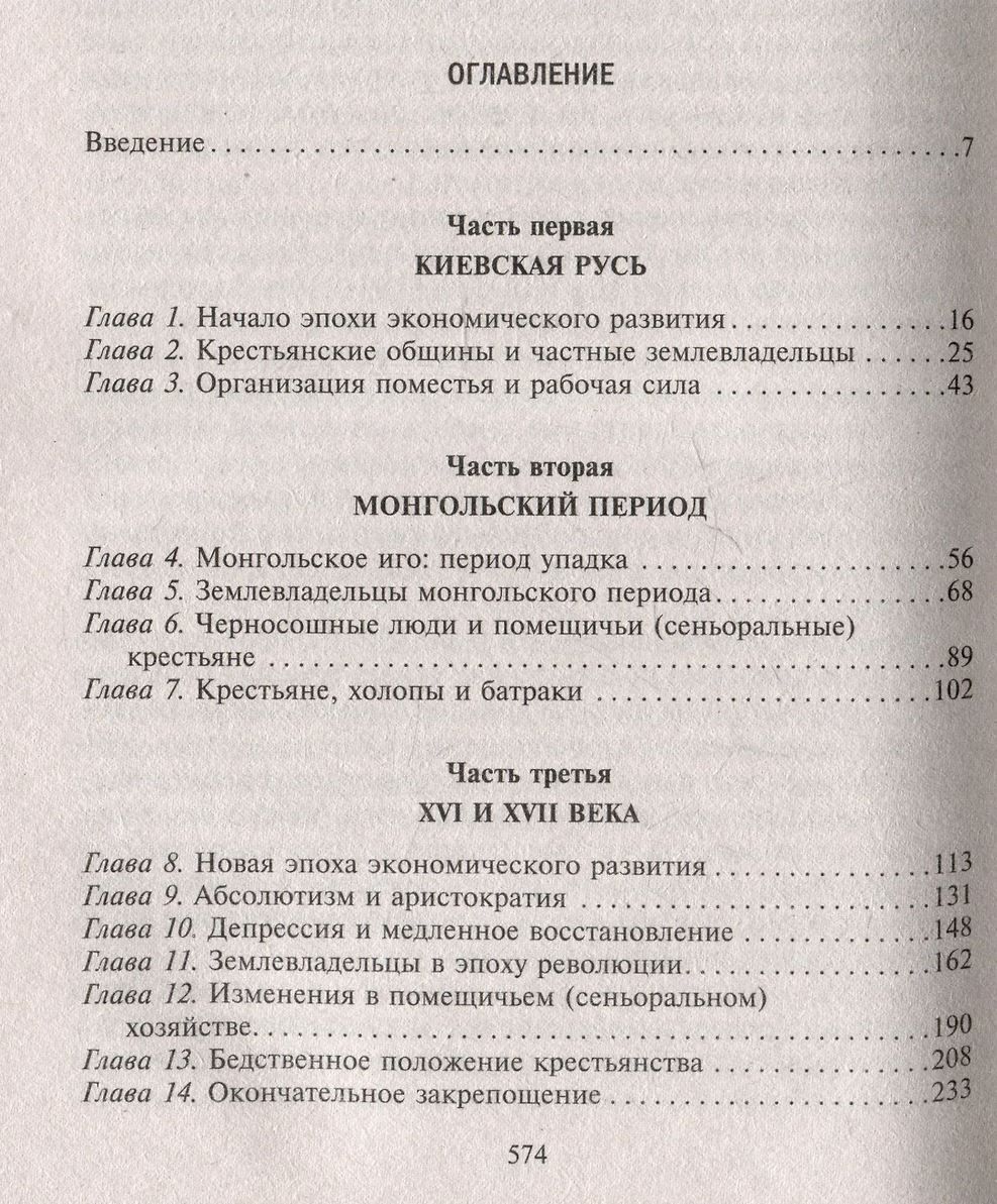 Джером Блум, профессор Принстонского университета, прослеживает историю взаимоотношений русских землевладельцев и крестьянской общины с времен варяжского вторжения до отмены крепостного права. В своем монументальном и вместе с тем новаторском труде Блум описывает типы земледелия и особенности ведения хозяйственной деятельности на обширных территориях страны, виды и устройство сельских поселений и господских усадеб, систему взимания налоговых сборов и податей. Автор освещает не только аграрные вопросы, но и жизнь народа — и дворян, и землепашцев, рассматривает причины возникновения крепостного права и делает вывод, что закрепощение крестьян определило экономическое и социальное развитие государства и сформировало его политическое устройство.