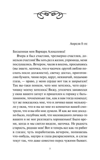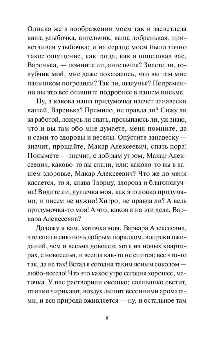 Мелкий чиновник Макар Девушкин помогает осиротевшей дальней родственнице Вареньке устроить свою жизнь в Петербурге. Он – неуклюж, нелеп и часто смешон. Она – юна, наивна и едва держится на плаву. В противостоянии безразличному огромному миру у двух одиноких людей есть только одно спасение – это писать пронзительные письма друг другу.