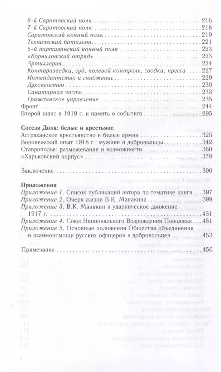 Один из таких сюжетов разворачивался на границе Области войска Донского и Саратовской губернии, на фоне знаменитой битвы за Царицын. Энергичный офицер В.К. Манакин при поддержке донского атамана П.Н. Краснова смог создать боеспособное формирование из крестьян юга Саратовской губернии — Саратовский корпус. История этого воинского формирования рассматривается в контекстах Гражданской войны на Юге, крестьянско-казачьих взаимоотношений, особенностей военного строительства Войска Донского, Добровольческой, Южной, Астраханской армий. Настроение и поведение саратовских крестьян сравнивается с таковыми крестьян Ставропольской, Астраханской, Воронежской губерний.