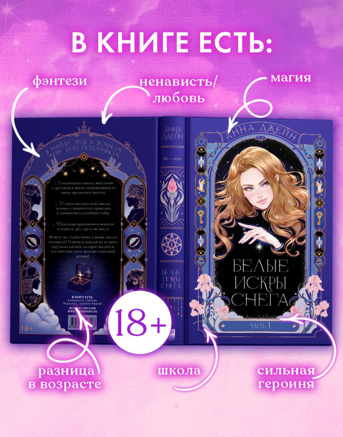«Белые искры снега. Часть 1» — первая часть самой важной трилогии Анны Джейн. Культовый роман с новой редакторской версией текста от «Трендбукс» в подарочном оформлении: обложка с иллюстрацией невероятной Карины Яшагиной, передающая мистическую атмосферу зимнего мира, изящный дизайн страниц, цветные обрезы, иллюстрированные форзац и нахзац.