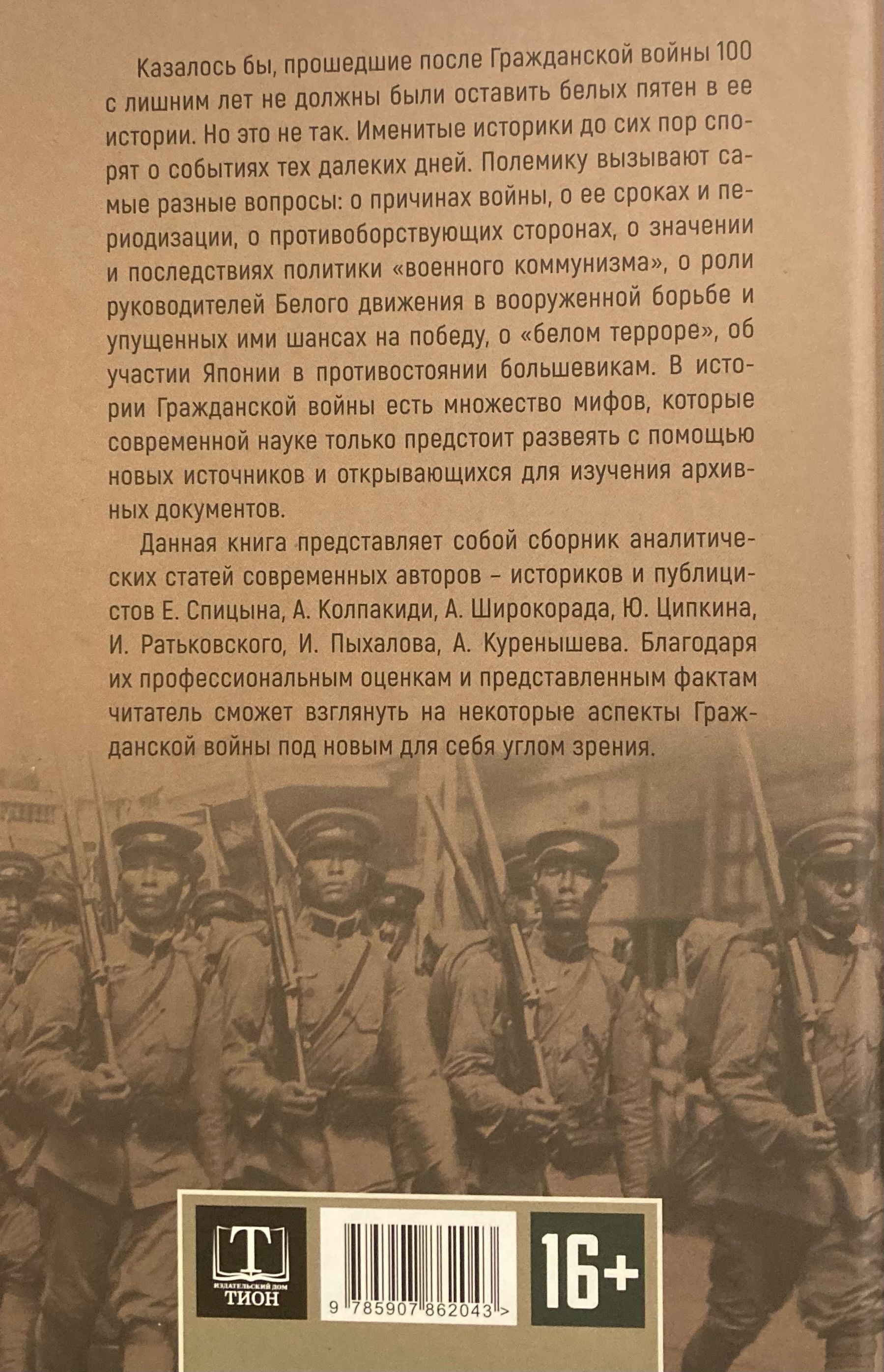 Данная книга представляет собой сборник аналитических статей современных авторов-историков и публицистов Е. Спицына, А. Колпакиди, А. Широкорада, Ю. Ципкина, И. Ратьковского, И. Пыхалова, А. Куренышева. Благодаря их профессиональным оценкам и представленным фактам читатель сможет взглянуть на некоторые аспекты Гражданской войны под новым для себя углом зрения.